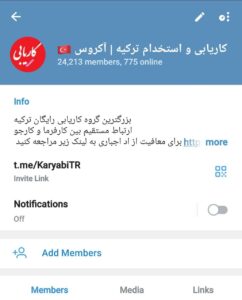 گروه کاریابی ترکیه را در تلگرام دنبال کنید، https://telegram.me/karyabiTR کاریابی ترکیه با 24000 هزار عضو مشاغل و کارهای جدید را به کاربران ارائه میدهد